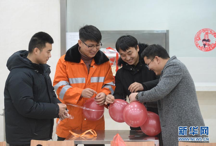 1月20晚7时许,事先毫不知情的李亚营被带到食堂,工友们放起礼花,闪亮的彩纸落在她身上,简简单单却热热闹闹。“很是意外,很受感动。”李亚营眼中泪光闪闪。在临时布置的婚房里,孙京南和李亚营拨通了两家亲人的视频,分享喜悦和甜蜜。