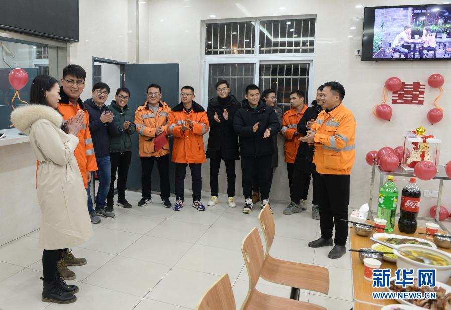 1月20日,工友们在仪式上祝福孙京南(左二)、李亚营(左一)。新华社记者 季春鹏 摄