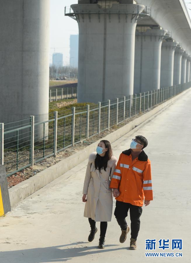 1月20日,孙京南带着李亚营在车间附近参观。新华社记者 季春鹏 摄