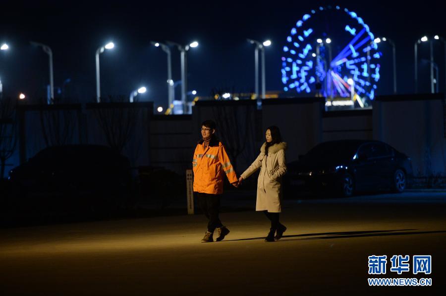 1月20日,在其他工友用餐完后,准备布置食堂的孙京南带着不知情的李亚营在车间散步。新华社记者 季春鹏 摄