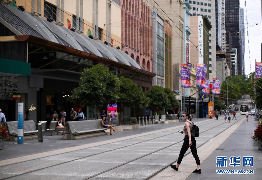 2月4日,一名女子在澳大利亚墨尔本戴口罩出行。新华社记者 白雪飞 摄