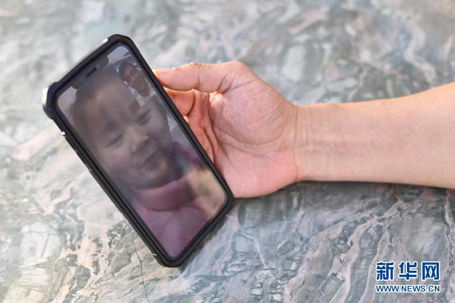 1月30日,南海第一救助飞行队的空勤教员李军升在跟家人视频。新华社记者 张丽芸 摄