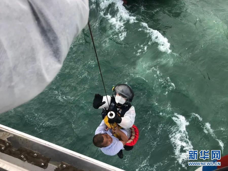 这是南海第一救助飞行队队员在广东茂名附近海域救助遇险人员的资料照片(2020年7月10日摄)。新华社发