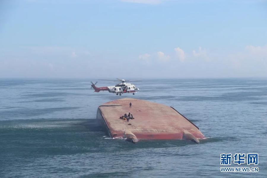 这是南海第一救助飞行队对翻扣的运砂船展开救援的资料照片(2020年7月26日摄)。新华社发