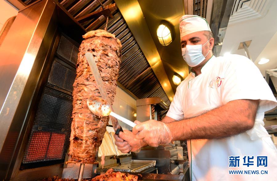 2月4日,餐厅工作人员佩戴口罩在科威特费尔瓦尼耶准备食物。新华社发(阿萨德摄)