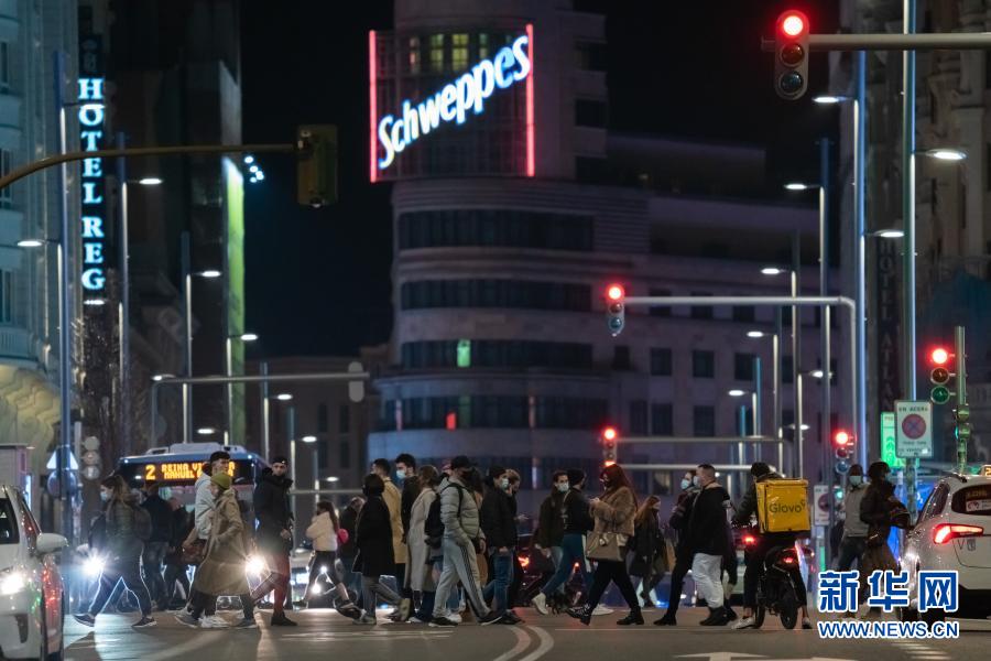 2月4日,佩戴口罩的市民走过西班牙马德里格兰维亚大街。