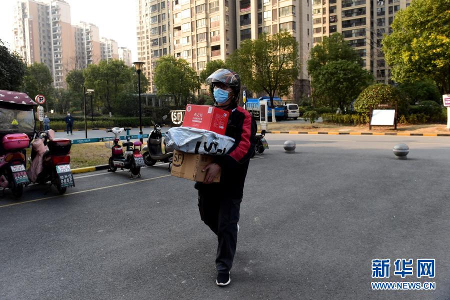 2月4日,李洪强在合肥市一居民小区内派送快递。