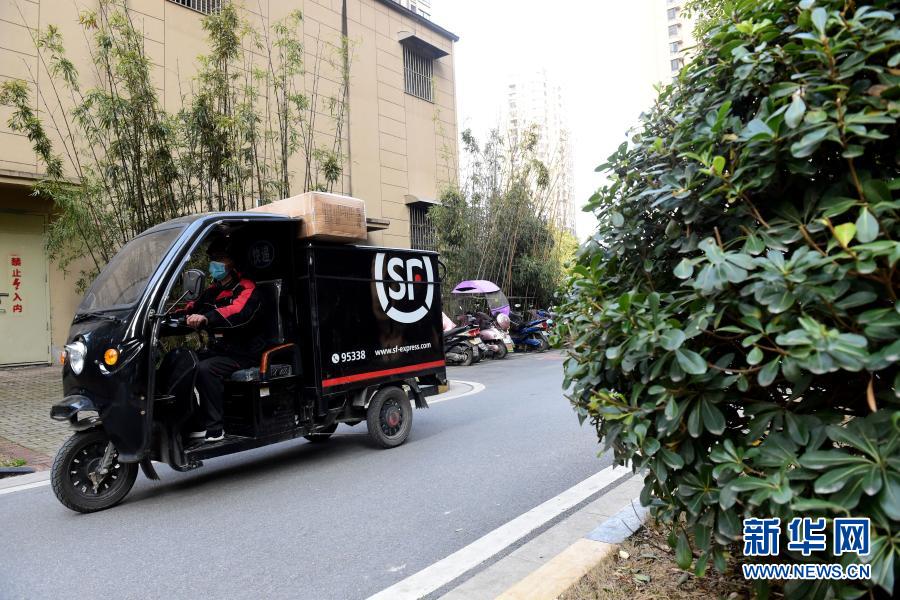 2月4日,李洪强驾驶三轮车在合肥市一居民小区内派送快递。