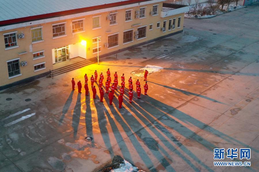 在霍尔果斯压气首站,运维人员进行班前点名(2月4日摄)。