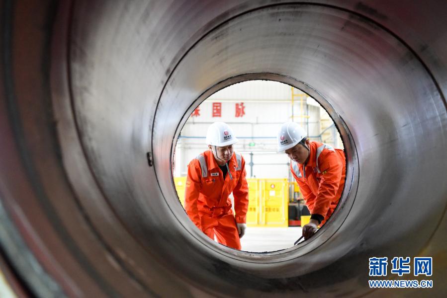 在霍尔果斯压气首站,维抢修人员在交流天然气管道焊接技术(2月4日摄)。新华社记者 丁磊 摄