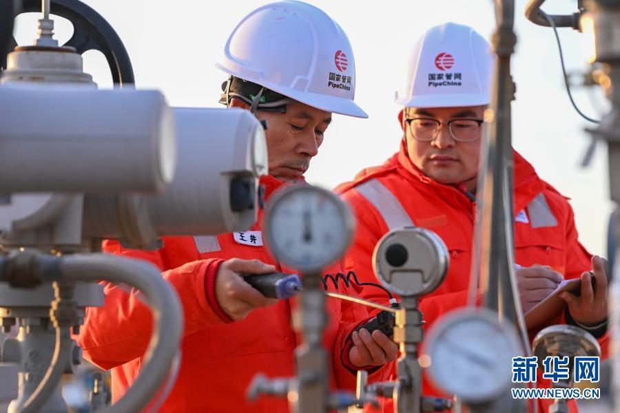 在霍尔果斯压气首站,运维人员通过可燃气体检测仪对设备进行密封检查(2月4日摄)。新华社记者 丁磊 摄