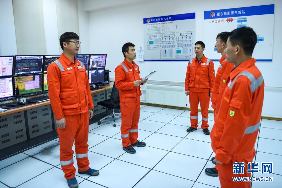在霍尔果斯压气首站,调度运行值班员进行交接班(2月4日摄)。新华社记者 丁磊 摄