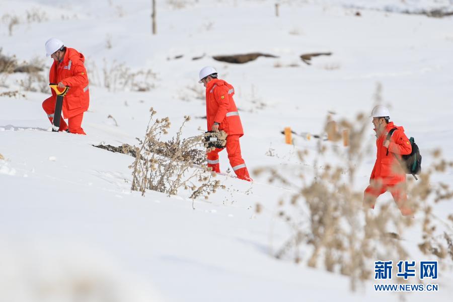 管道巡护人员在西气东输二线果子沟段巡检(2月4日摄)。新华社记者 丁磊 摄