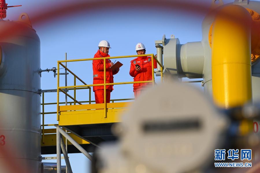 在霍尔果斯压气首站,运维人员对站内设备进行巡检(2月4日摄)。新华社记者 丁磊 摄