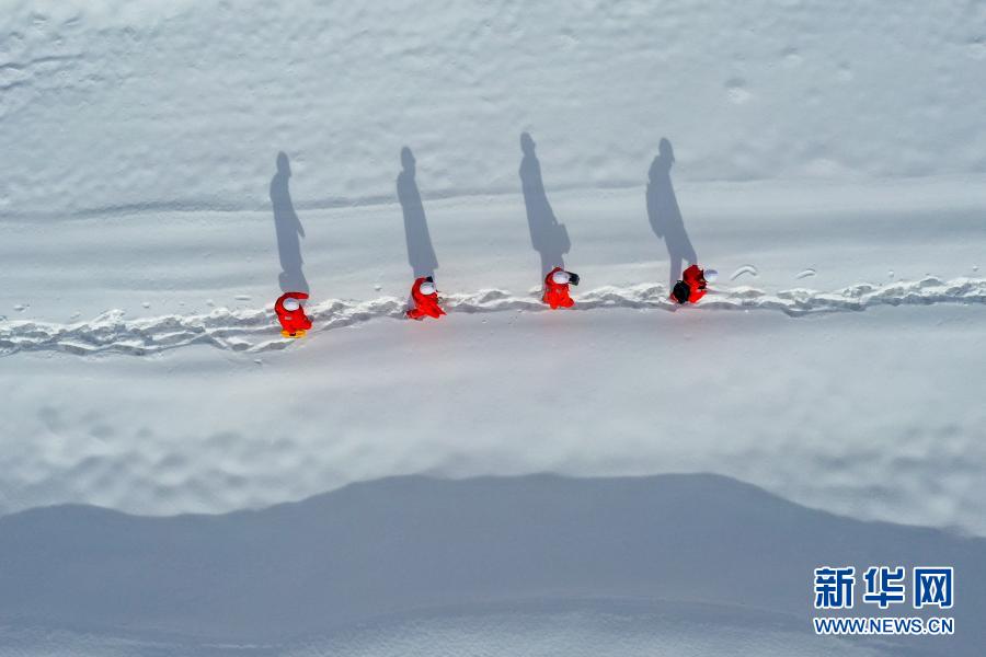 管道巡护人员在西气东输二线果子沟段巡检(2月4日摄,无人机照片)。新华社记者 丁磊 摄