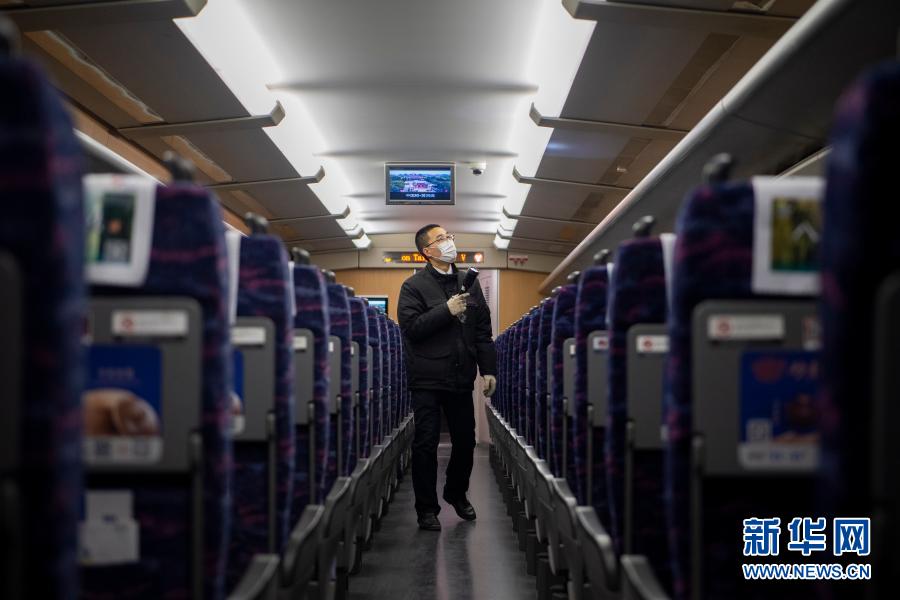 2月5日,石金强在车上检查车内灯管。新华社记者 杨晨光 摄