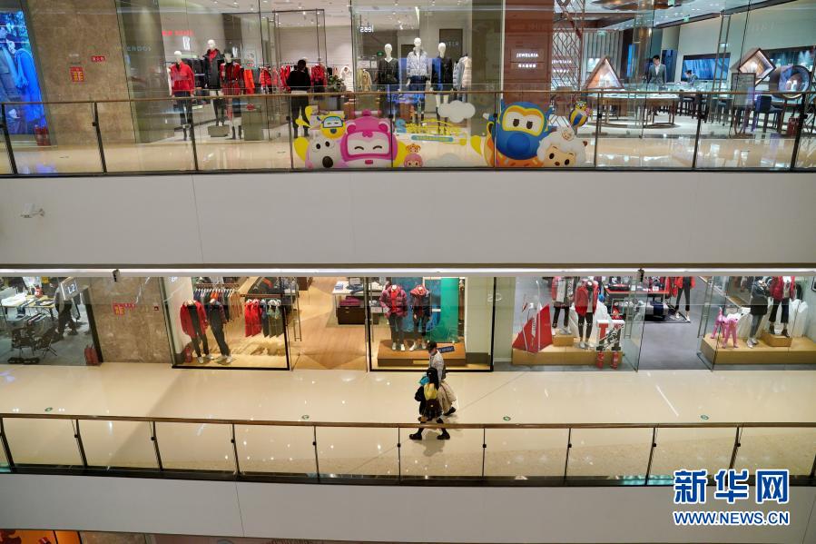 2月5日,市民走在石家庄市桥西区一家大型商场内。