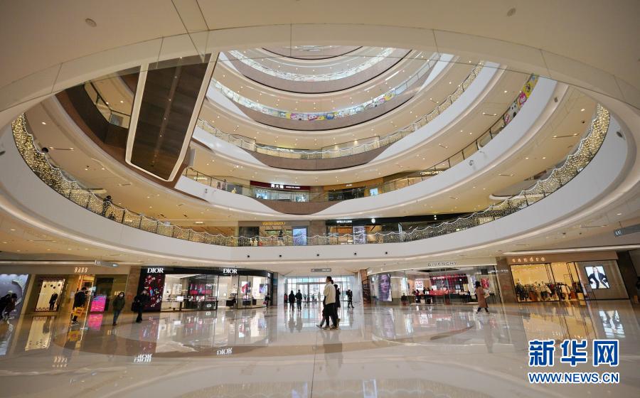 2月5日,市民走在石家庄市桥西区一家大型商场内。