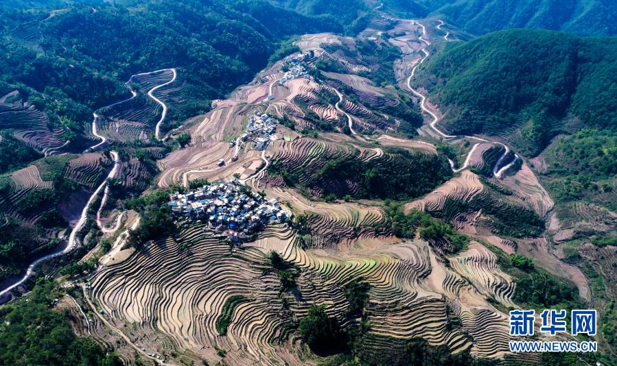 2月4日拍摄的红河县三村乡哈尼梯田(无人机照片)。新华社记者 陈欣波 摄