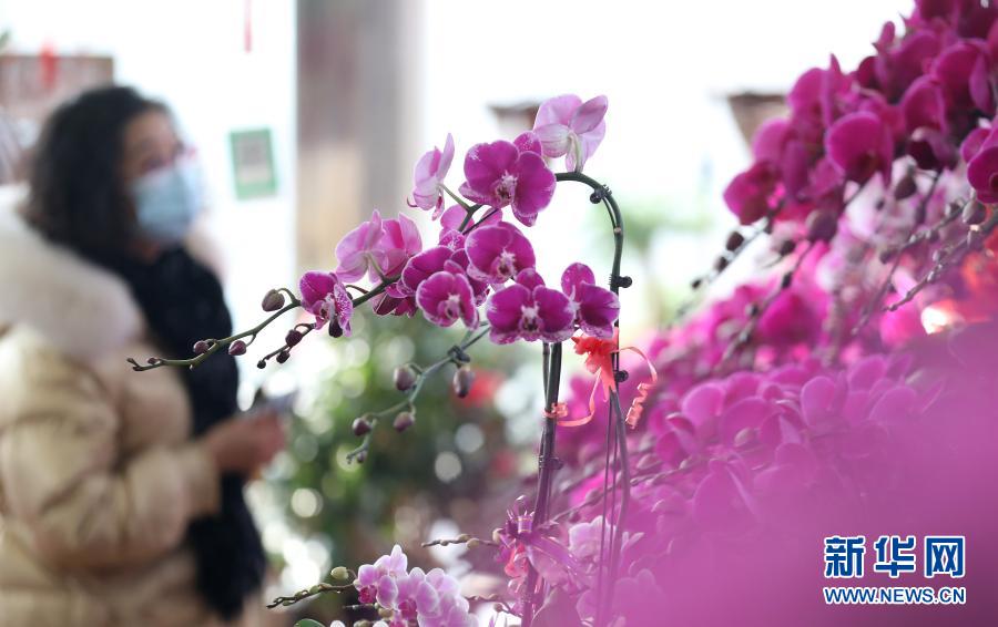 春节临近,辽宁省鞍山市各花卉市场迎来客流高峰,人们选购各种花卉,迎接新年。