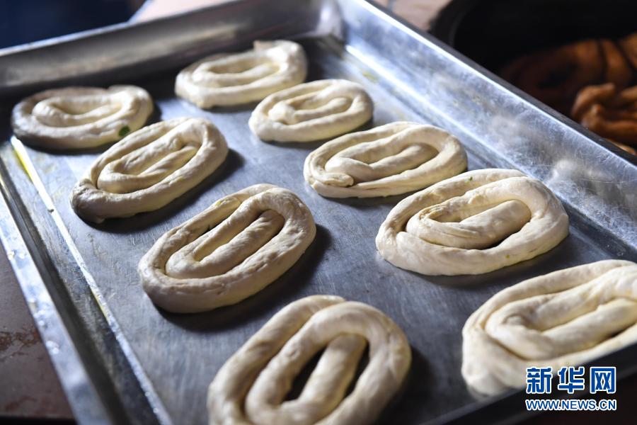 这是2月5日拍摄的由发面制作等待下锅的盘馓。新华社记者张曼怡摄