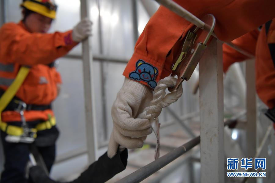 高空作业时,保障电力班工人安全的就是一根根安全绳(1月29日摄)。新华社记者 彭昭之 摄