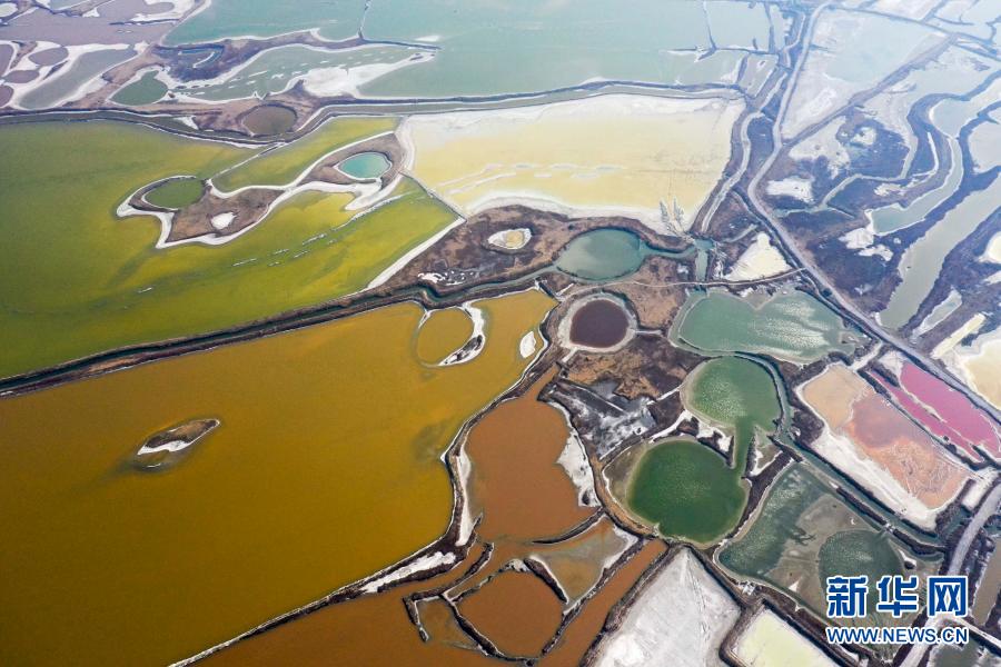 近日,随着气温逐渐回升,山西运城盐池呈现五彩斑斓的景象,美不胜收。