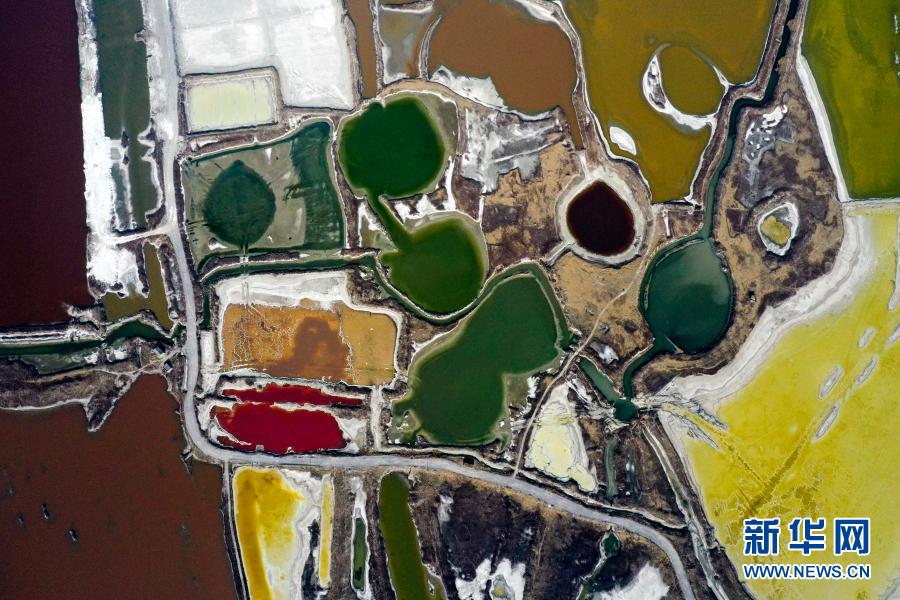 近日,随着气温逐渐回升,山西运城盐池呈现五彩斑斓的景象,美不胜收。