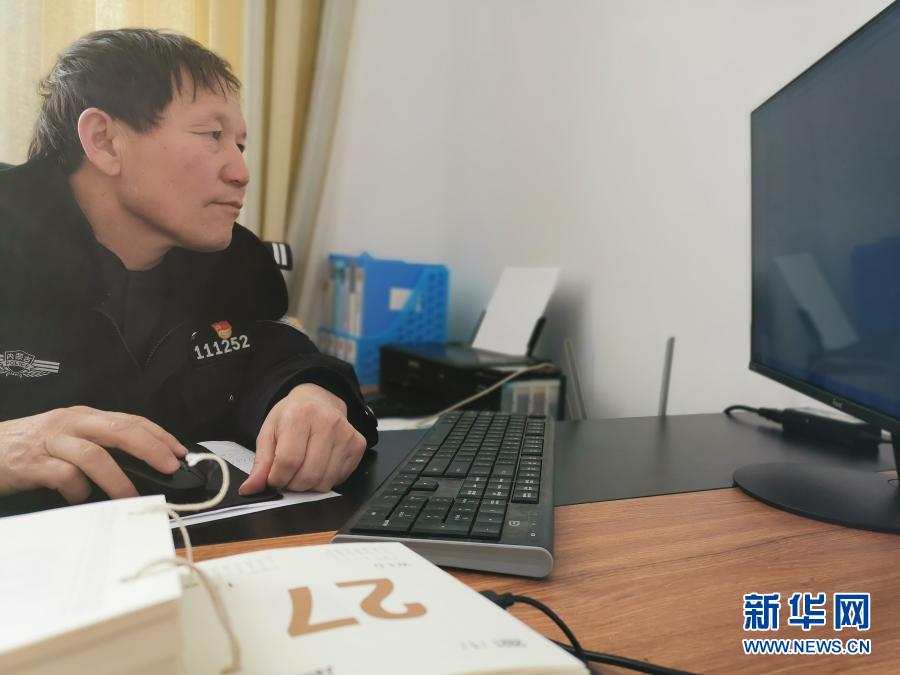 宝音德力格尔在派出所办公室整理电子户籍档案(1月27日摄)。新华社记者 刘懿德 摄