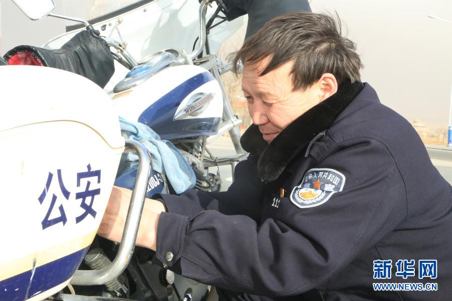 宝音德力格尔仔细检查摩托车(1月27日摄)。新华社记者 刘懿德 摄