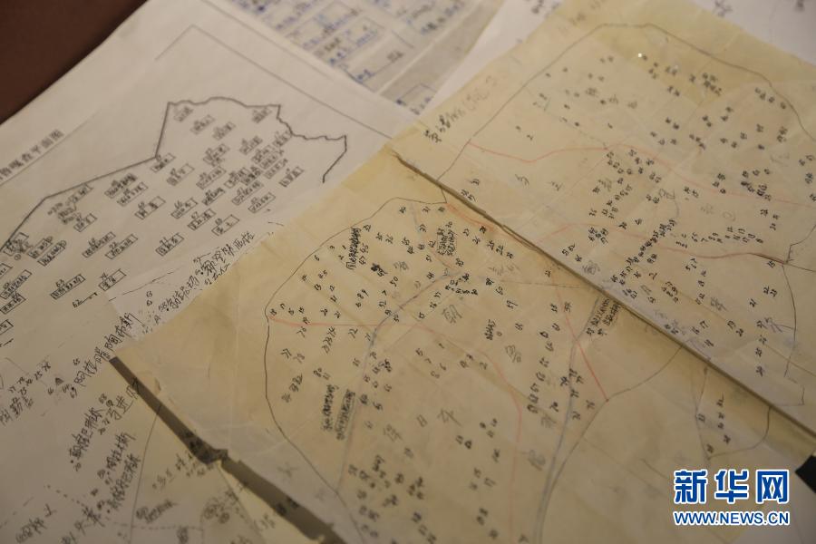 宝音德力格尔手绘的辖区地形图(1月27日摄)。20多年来,宝音德力格尔走遍了辖区的山山水水,为了提高效率,他手绘多份辖区地形图,把牧民定居点、道路情况等标注得一清二楚。新华社记者 刘懿德 摄