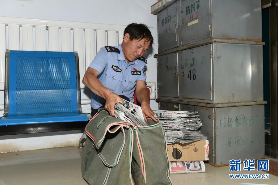 宝音德力格尔在下乡前往褡裢里装报纸杂志等物品(资料图片)。新华社发