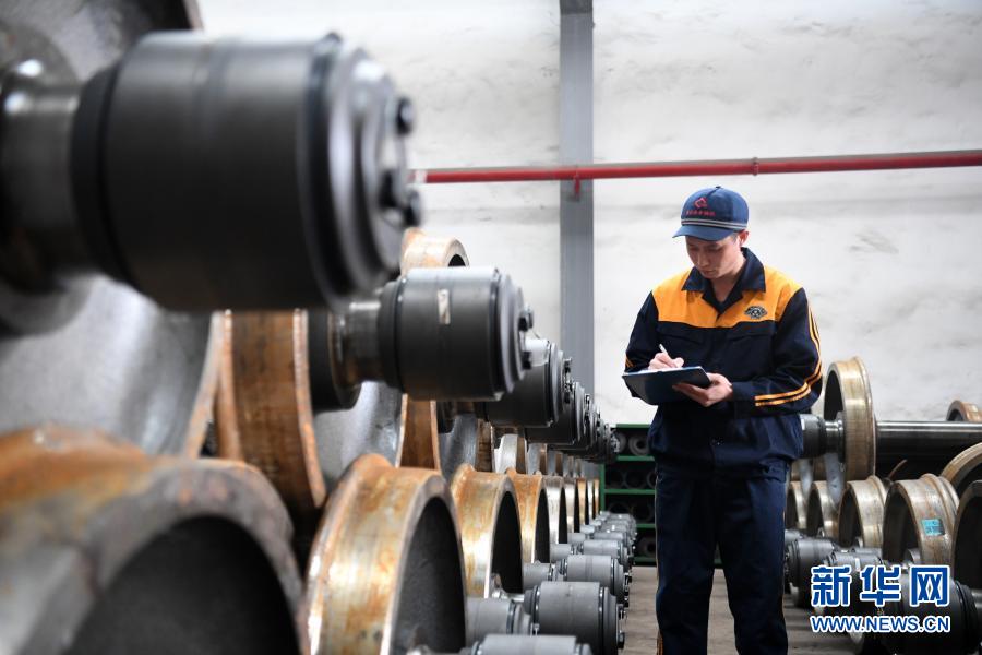 2月5日,重庆西车辆段轮轴装修工在进行新轮轴信息采集。新华社记者 唐奕 摄