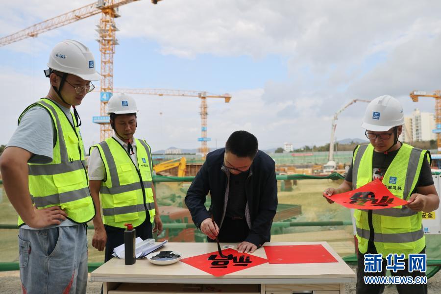 当日正值南方小年,由中建四局承建的三亚万科安居房项目开展过小年迎春活动。据悉,该项目职工积极响应国家“就地过年”的号召,超九成工人选择留琼过年。