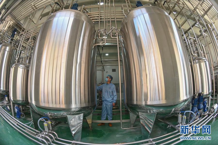 2月5日,在连江县一家海洋生物科技企业,工作人员查看海洋生物制品设备运行情况。
