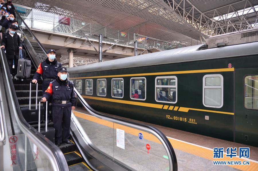 2月5日,在合肥站,周彪(前)前往即将值乘的列车。新华社记者 韩旭 摄