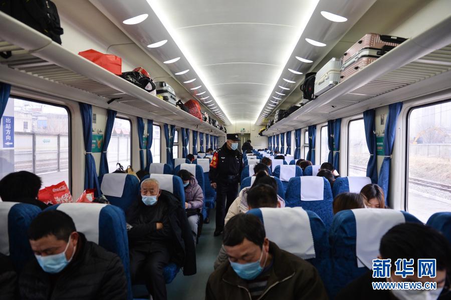 2月5日,在K8422次列车上,周彪进行安全巡逻检查。新华社记者 韩旭 摄