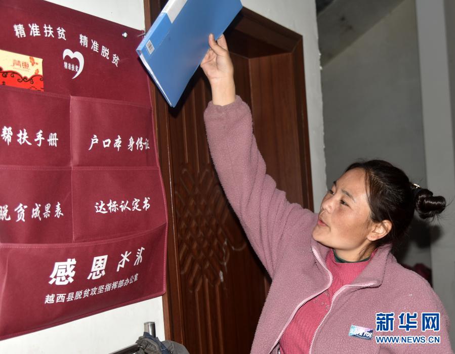 1月22日,巴木玉布木在家中整理脱贫材料。新华社记者 周科 摄