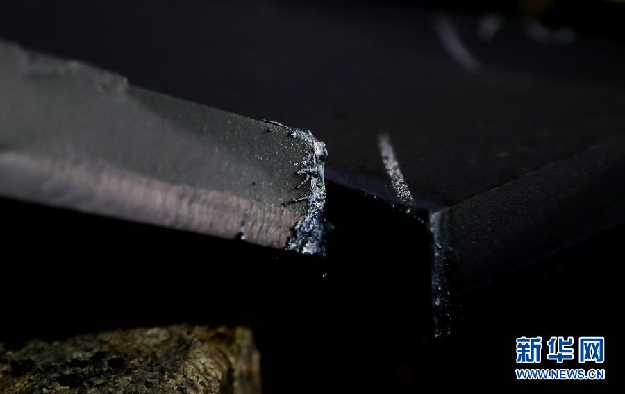 这是切割完成后钢板边缘凝固的铁水(1月28日摄)。新华社记者 方喆 摄