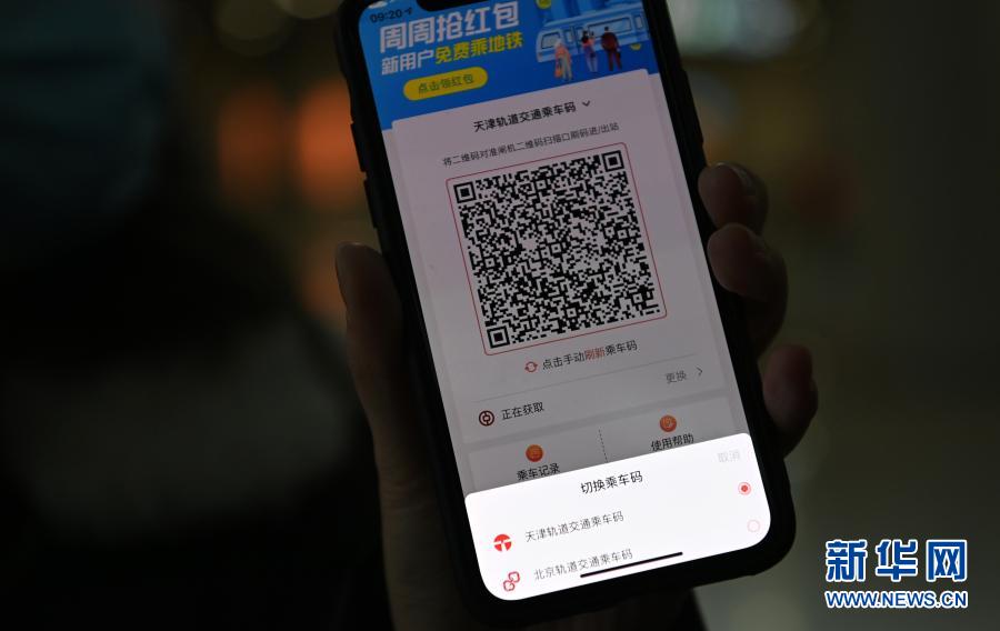 2月6日,天津轨道交通运营集团的工作人员展示切换乘车码页面。新华社记者 李然 摄