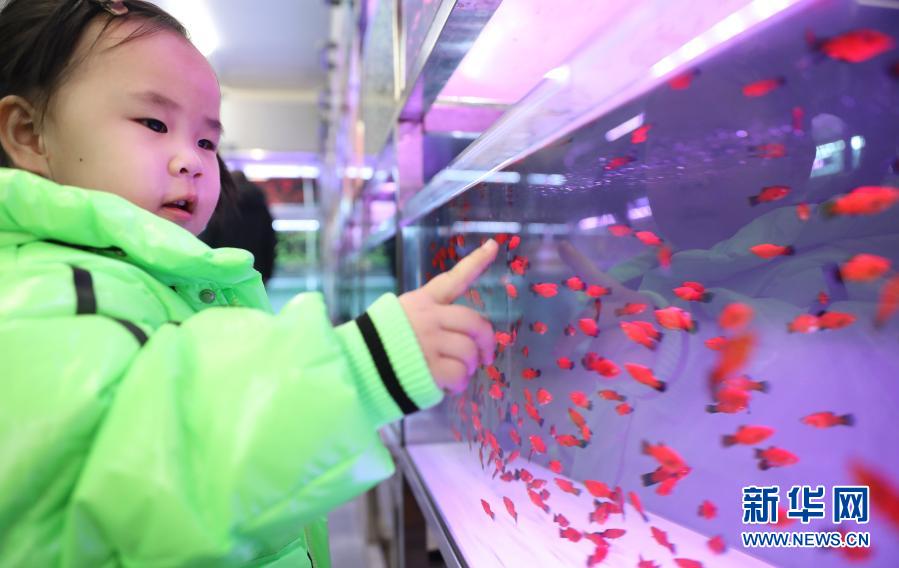 2月6日,一名小朋友在鞍山市三台子观赏鱼交易中心观看观赏鱼。新华社记者 姚剑锋 摄