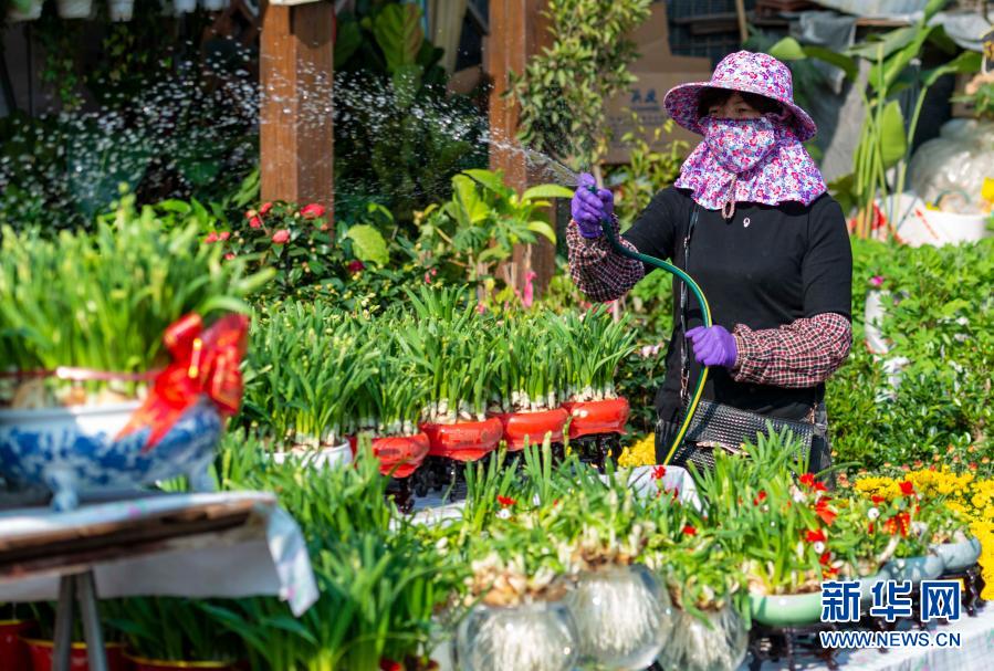 春节临近,在福建省漳州市的花卉市场,作为传统年宵花的水仙格外受到青睐,不少市民前来选购水仙花装扮家居,增添节日喜庆气氛。