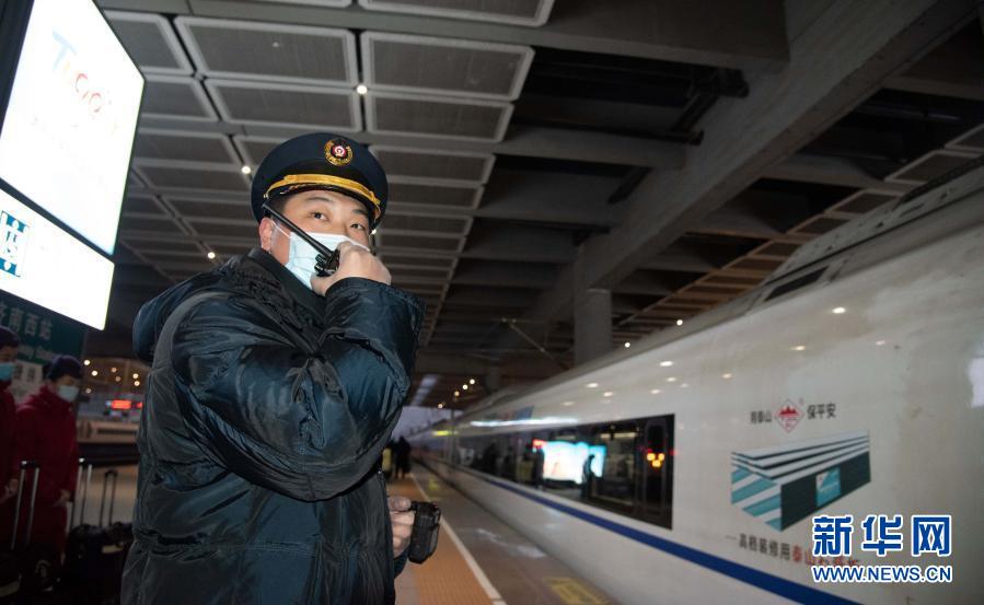 曹淄阳在站台用对讲机指挥联络(1月10日摄)。