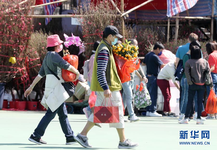 2月6日,市民在香港维多利亚公园的年花销售点选购鲜花。新华社记者 李钢 摄