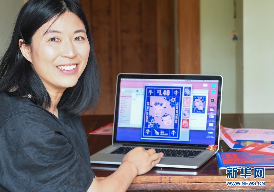 2月6日,在新西兰首都惠灵顿,华人设计师徐膺敏展示其设计的2021年中国牛年生肖邮票。
