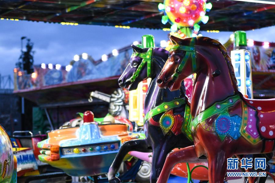 这是2月6日晚拍摄的克罗地亚萨格勒布的一处游乐场里的装置。新华社发(Pixsell图片社 布鲁诺·凡图林摄)