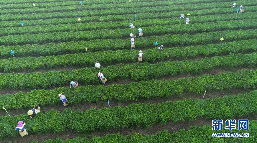 近日,海南省白沙黎族自治县五里路茶叶专业合作社的有机茶园迎来春茶采摘期,茶农抢抓农时采摘茶叶,供应市场。