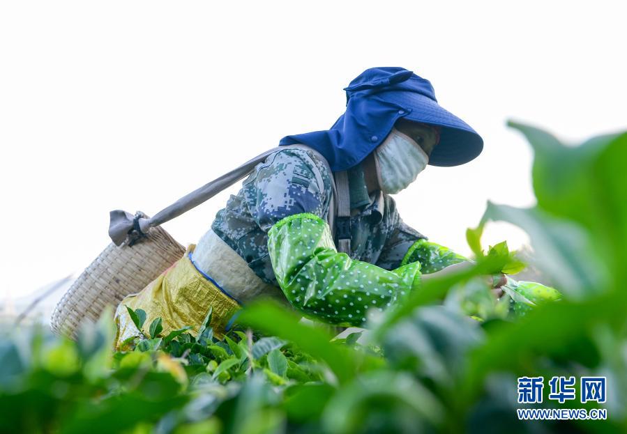 近日,海南省白沙黎族自治县五里路茶叶专业合作社的有机茶园迎来春茶采摘期,茶农抢抓农时采摘茶叶,供应市场。