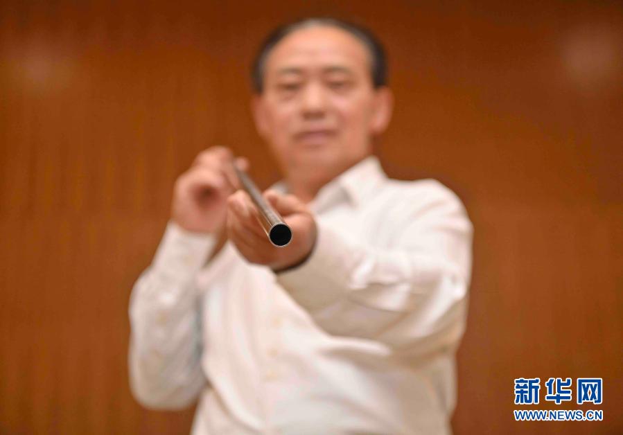 2月5日,在四川成都,张富源在展示他率领团队自主设计研制的抗高温高压、耐腐蚀、导热性能好的传热管。该传热管是蒸汽发生器上最关键的部件之一。