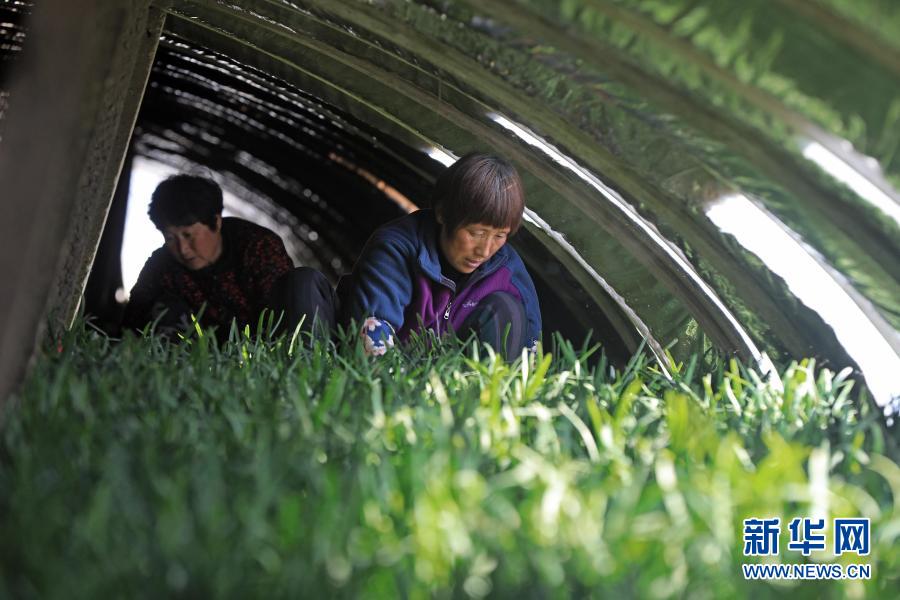 2月7日,滦南县宋道口镇断火庄村农民在拱棚里收获韭菜。